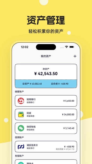 用户可以添加各类账户信息,系统会整合管理这些资产数据,帮助用户清晰掌握自身的资产状况。