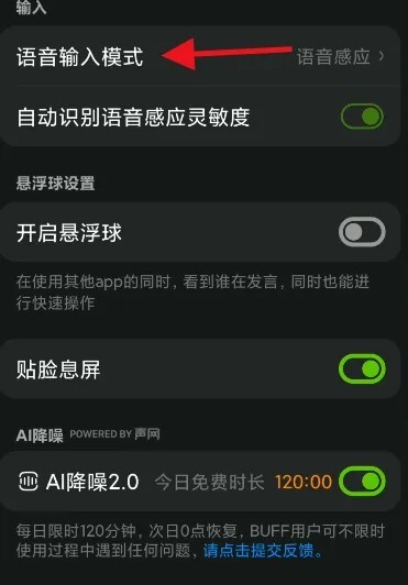 3、进入语音设置,点击语音输入模式按钮。