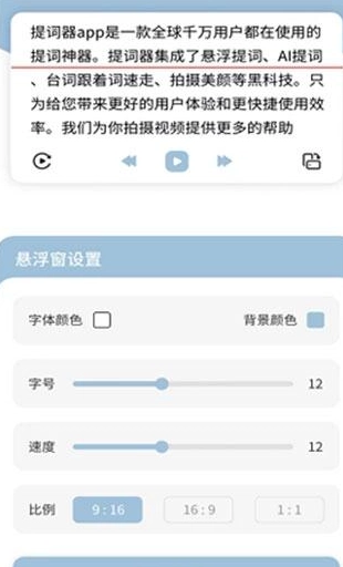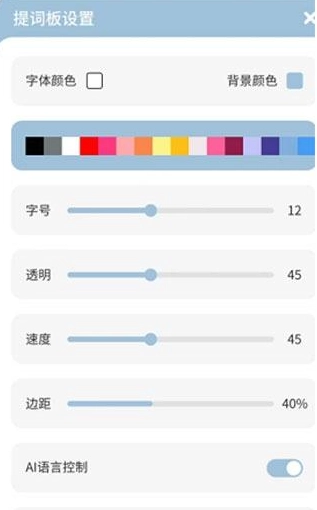 提词板模式设置:可实现全屏提词、AI智能语音提词、横屏旋转功能,还支持字体与背景颜色的调节。
