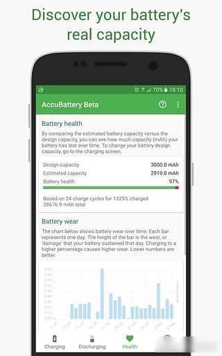 1.精准电量监测:AccuBattery借助先进算法,可精准追踪手机电池的电量消耗状况,助力用户即时了解电池当前状态。