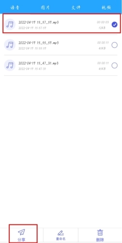 若想转发语音,可先选定目标语音内容,再点击界面左下方的分享按钮来完成操作。