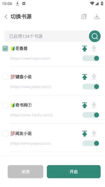 切换书源页面,选择你要的书源,点开启即可