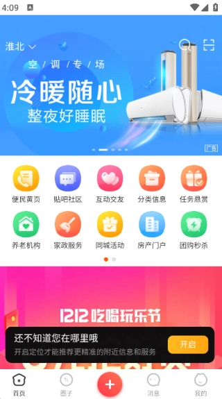 在首页就能看到便民黄页、贴吧社区、互动交友之类的功能;