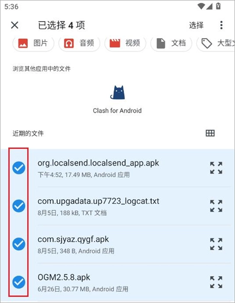LocalSend支持批量选择文件进行传输,操作方法如下