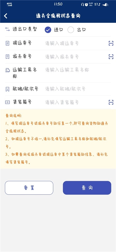 当跳转至状态查询界面后,填写提运单号、报关单号等相关信息,再点击查询按钮即可。