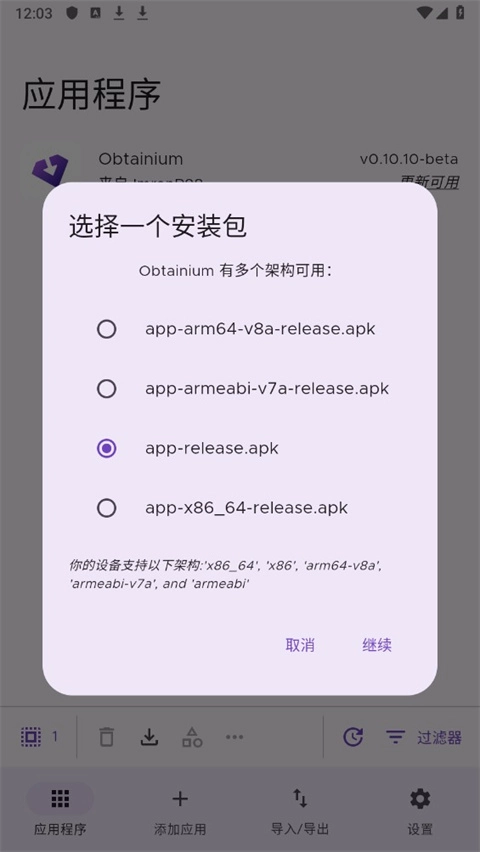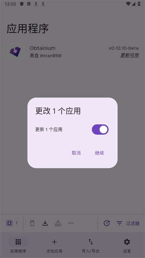 点击继续,更新应用;