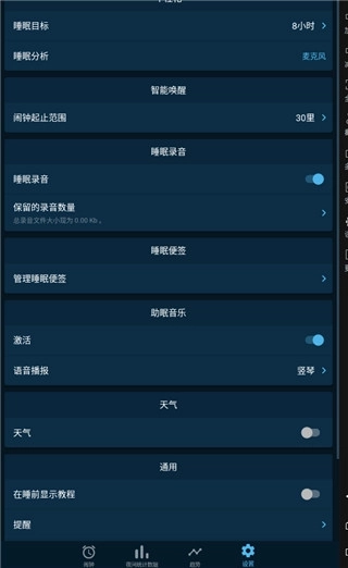 4、点击设置后,用户能够根据自身需求自定义开启睡眠录音、助眠功能、天气显示等多项内容。