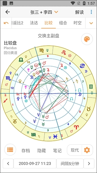 1、支持丰富多样的星盘类型,无论是本命盘、合盘、推运盘,还是合盘推运盘均有覆盖,基本包含了您日常所需的各类星盘类型。