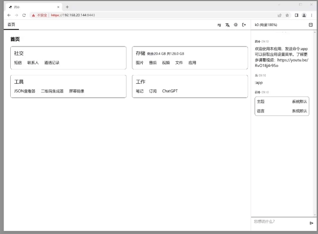 您能够借助无线连接访问自行搭建的网页,从而在电脑桌面上对手机进行各项管理操作。
