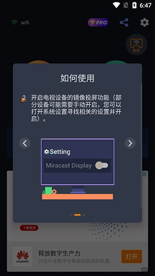2、打开电视设备的镜像投屏功能(部分设备或许需手动开启,您可进入系统设置查找相关设置并开启)。