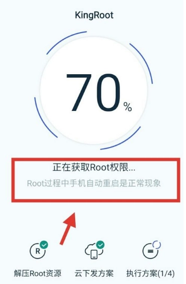 2、系统将自动检测root环境,完成root操作后重启手机。