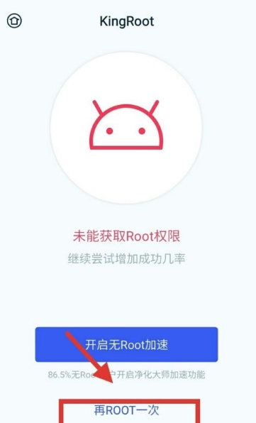 4、在进行root操作时,有可能会出现中途失败的状况。此时,只需点击界面下方的“再Root一次”按钮。要是再次操作仍失败,可尝试重启手机后重新进行root。