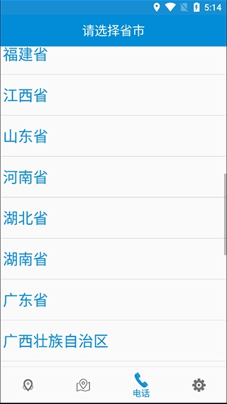 4、切换至“电话”页面,你也能够通过下拉的方式查找所在省份。