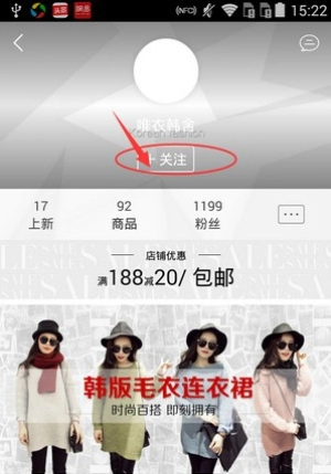 即可关注店铺。如图所示