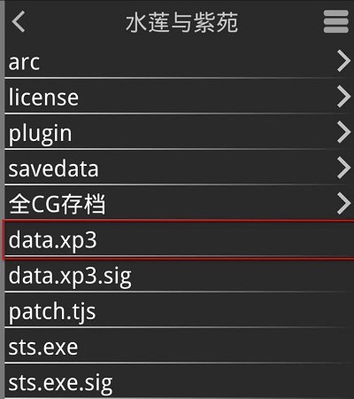 6、于模拟器里寻得刚刚修改完成的资源,点击【data.xp3】选项,即可开启游戏。