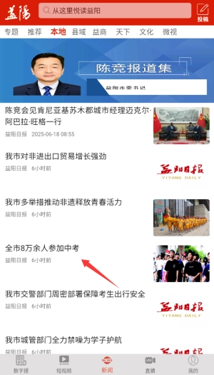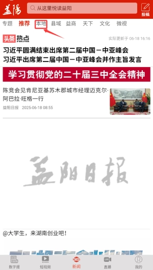 进入大益阳后,在首页导航栏选择“本地资讯”栏目,该栏目每日更新益阳地区的新闻动态。