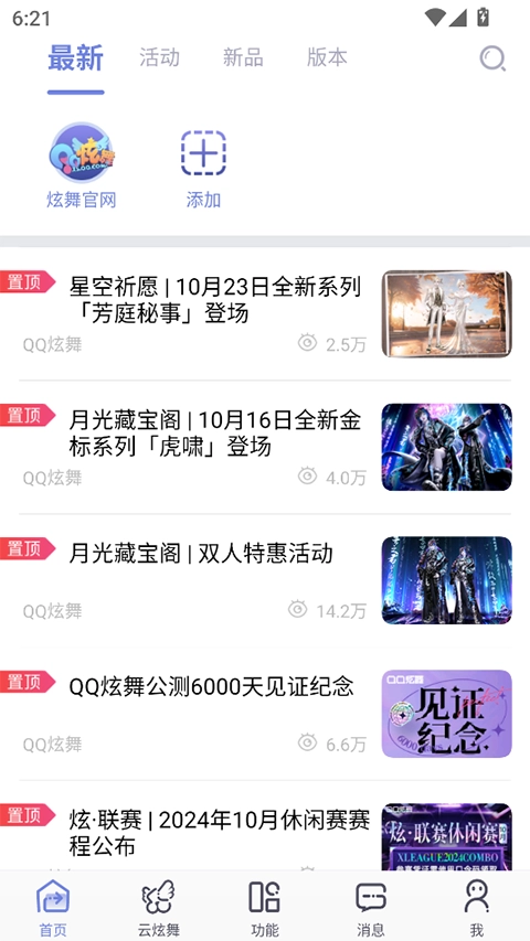 2、接着进入首页,便能看到QQ炫舞的最新活动、新品以及版本修改信息等内容。挑选自己感兴趣的,点击即可进行浏览。