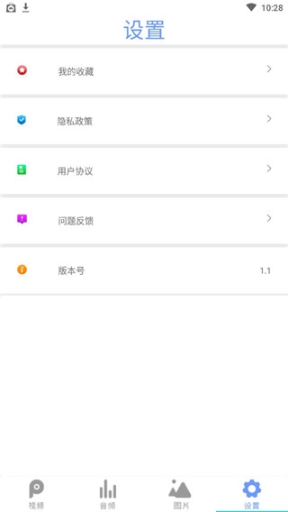 5、点击设置,可以查看我的收藏,以及进行问题反馈