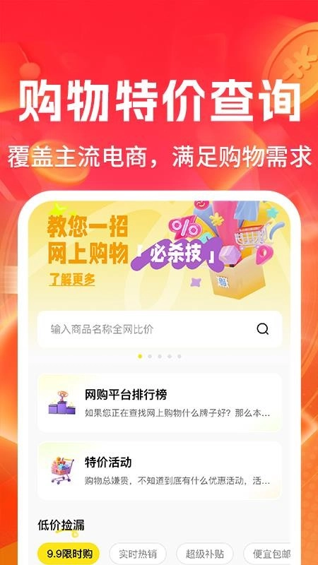 9这款电商购物平台以其独特的趣味性吸引用户,平台汇聚了种类繁多的特惠商品,各类折扣好物会及时更新,方便用户轻松选购到实惠划算的商品。平台每日都会推出新的优惠券和折扣活动,让用户在享受高品质购物体验的同时节省开支;对这款平台感兴趣的用户可以直接前往使用。