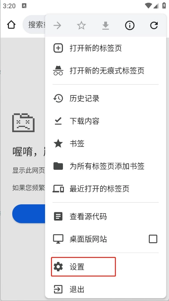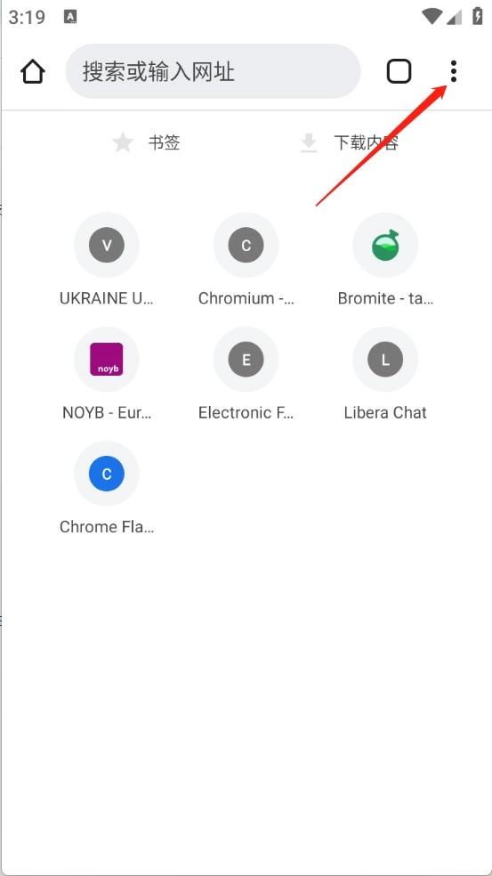 1. 开启Bromite,进入界面后,点击右上角的三个小点。