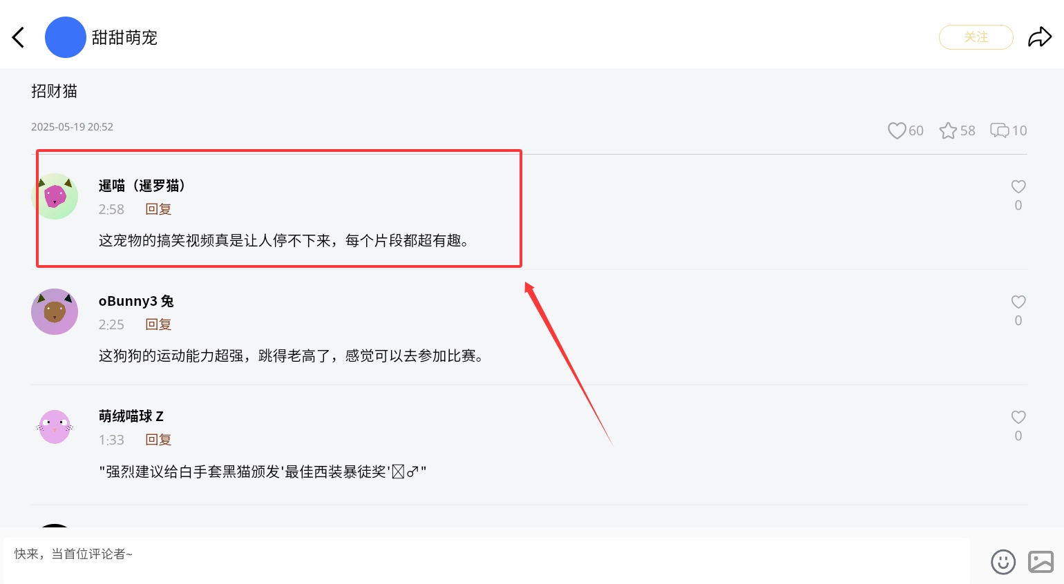 2、在分享内容中,能够看到下方他人评论的文字,并从中汲取科学养宠物的经验。