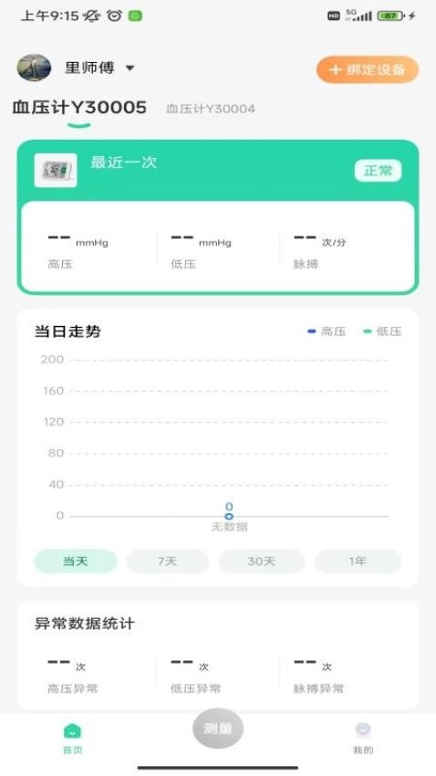 温度测量,借助所连接的设备来检测自身的体温,并对温度数据进行自动采集。