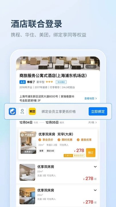 我们提供国内外各类酒店的查询及预订服务,支持同时搜索多个城市或多家酒店,助力用户轻松完成价格对比与心仪酒店的挑选。