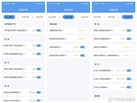 3、于功能概览里,您会发现这款软件支持众多主流应用的视频广告跳过功能,像抖音、快手、QQ以及微信等都涵盖在内。不仅如此,它还能够智能识别并跳过青少年模式下的限制内容。