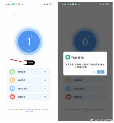 2. 若要达成自动化广告过滤的效果,需首先进入权限配置页面,以确保相关设置已准确开启。