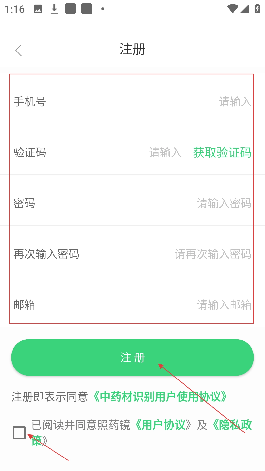 4、于注册页面填好信息,勾选协议,接着点击【注册】按钮,便可完成注册。
