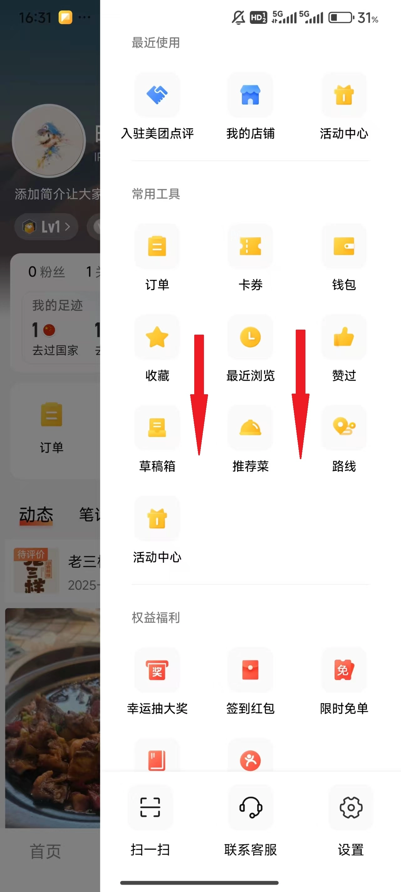 点击屏幕左侧的“生活服务”。
