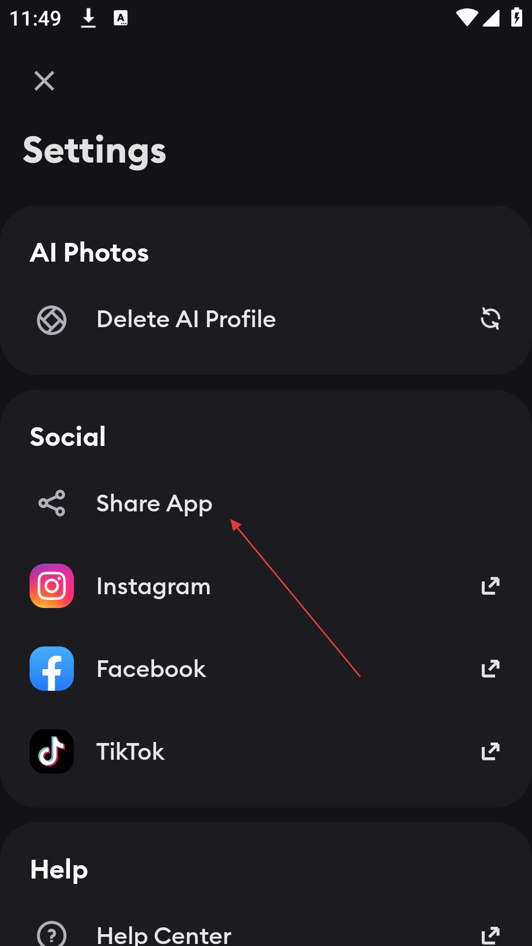 3、于设置页面,点击【ShareApp】选项,以打开分享选项菜单。