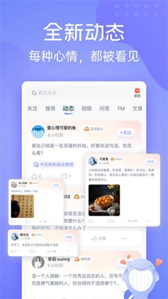 软件借助趣味测试、FM冥想、心理日记、互助问答、免费公开课等功能,帮助网友洞察自身情绪状态。2、平台提供丰富的心理学入门内容,涵盖心理学基础知识、社会热点的心理学解读,以及大众关注的职场相关话题。