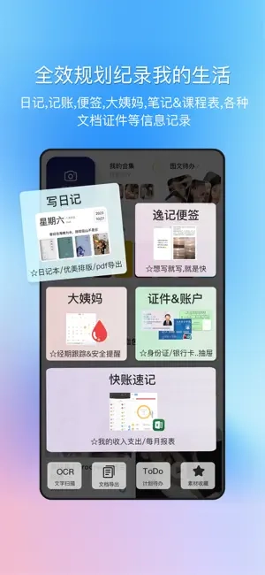 这款工具能让用户轻松留存生活里的点滴细节,涵盖了随手记录想法、写下每日感悟、管理收支情况等多种实用功能。