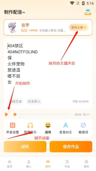 素材丰富:提供海量样音文案模板,优质背景音乐,自由打造专属于你的配音效果。