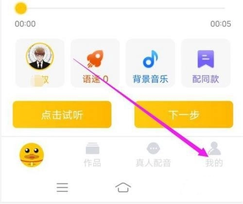 在配音鸭的主界面,点击右下角的【我的】按钮,就能进入个人中心啦。