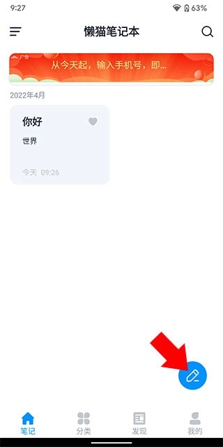 用户完成账号注册与登录后,点击“去记一条”即可创建新笔记;若已有笔记内容,点击页面右下角的悬浮图标便能快速进入记录界面。