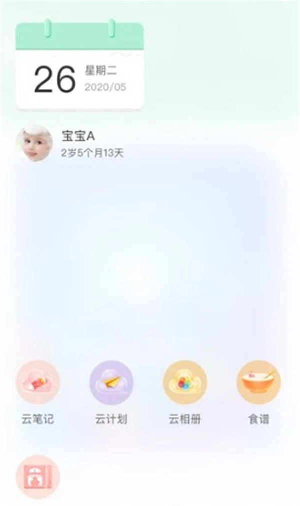 在宝宝成长记录页面,可以查看宝宝的年龄,使用云笔记、云计划、云相册等。