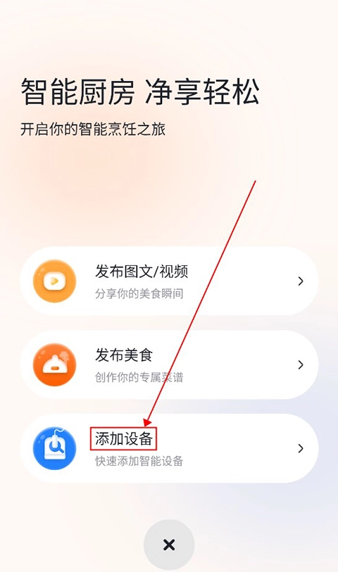 打开已完成安装的添可厨房设备,找到界面底部的功能按钮并点击以完成添加操作。