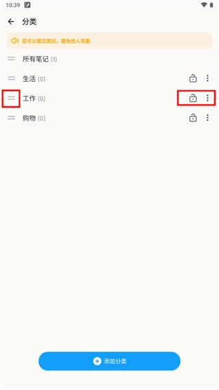 长按分类名称,能够执行重命名、排序、锁定、删除等个性化操作。