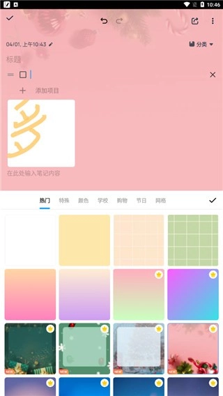 用户还可以更换笔记背景,让笔记更加多姿多彩。