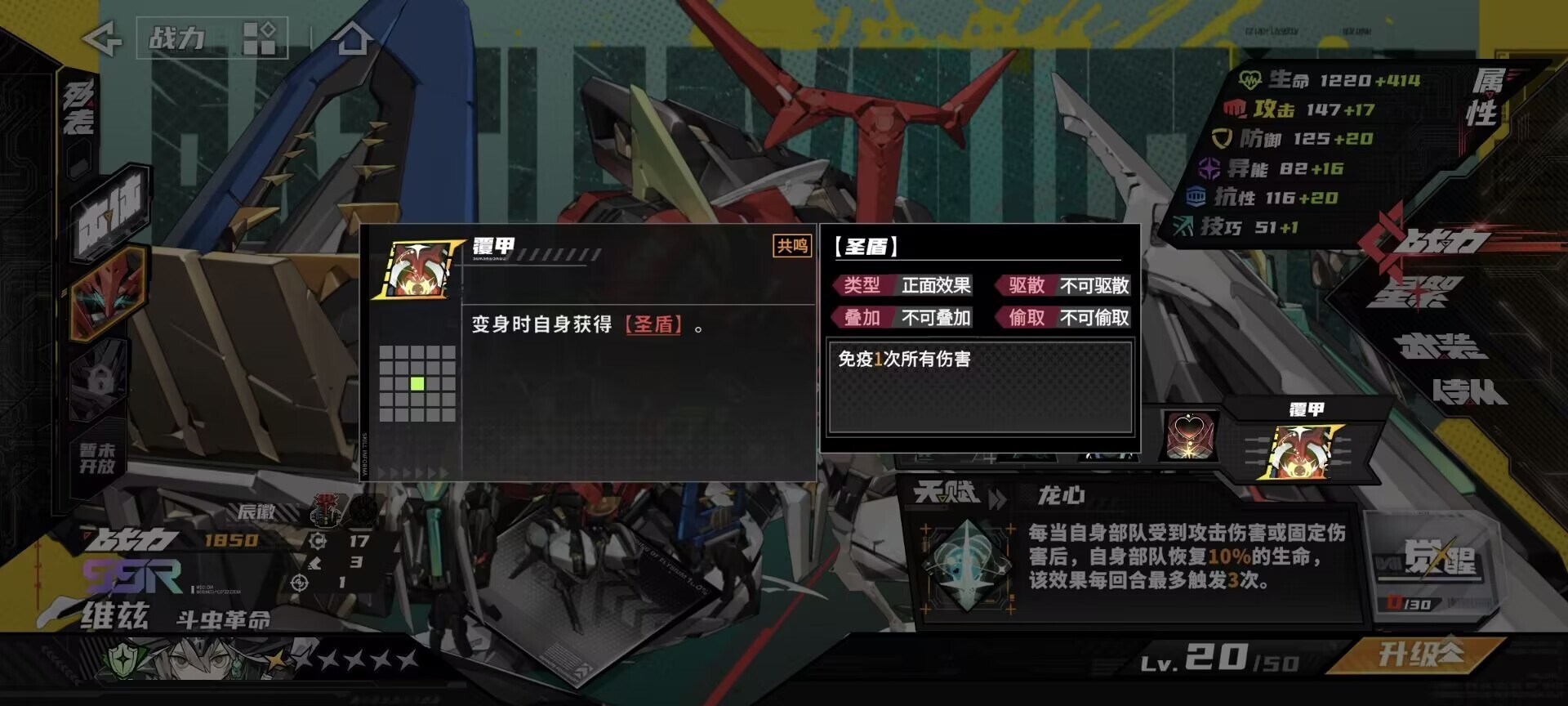 维兹的变身技圣盾同样是前期开荒不可或缺的技能,在推进关卡挑战2-10时,敌方BOSS的伤害极高,只能依靠维兹的变身技来抵御伤害。