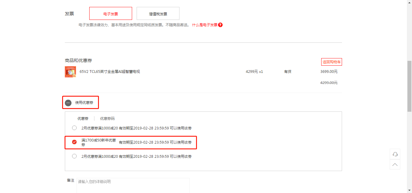 提交订单时需手动勾选或填写优惠券,您可在个人中心查看已拥有的优惠券明细。
