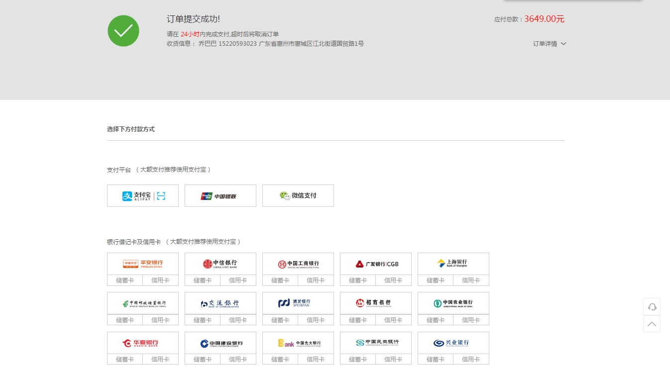 提交订单前,请务必仔细核对收货地址(为方便配送,建议具体到楼层)、发票信息、订单金额及所参与的优惠活动。温馨提示:订单提交后将无法进行修改,请确认无误后再提交。