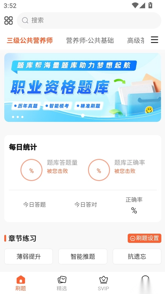 题库内所有科目的章节练习均可随意练习。