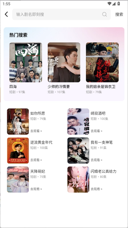 可以直接点击搜索功能,查找喜欢的短剧资源。