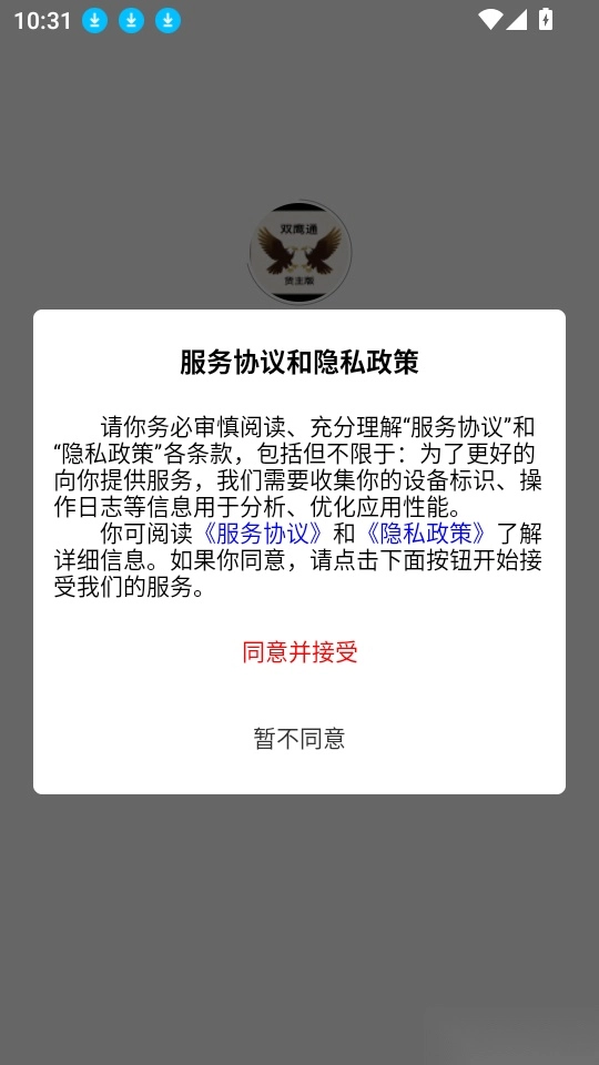 打开应用来点击”同意并接受“按钮进入中。