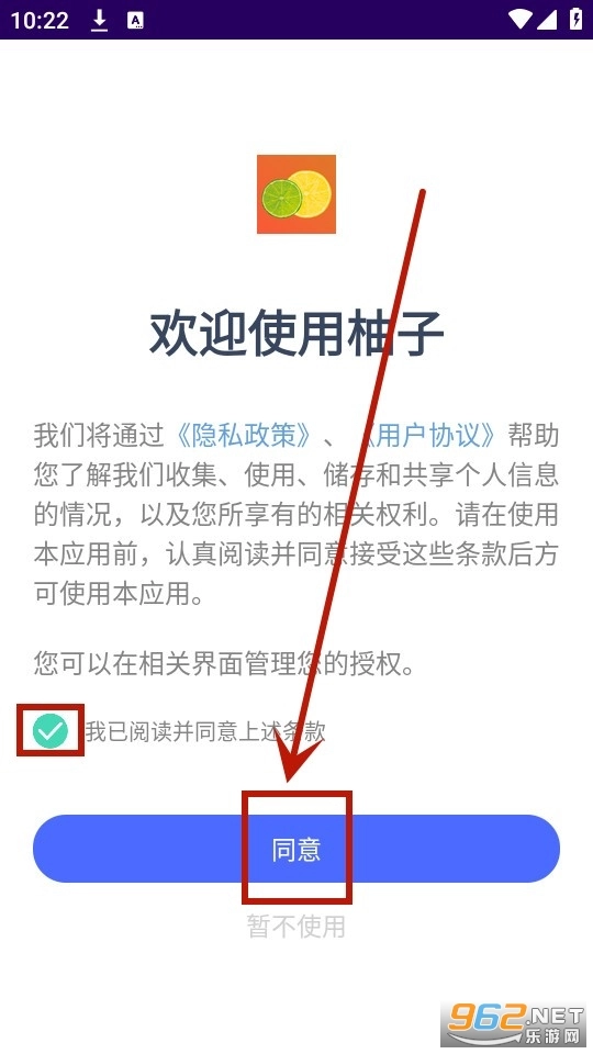 勾选隐私政策,点击同意进入柚子壁纸首页