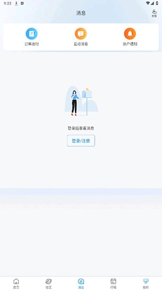 用户点击消息,可查看订单出行信息、与普通用户交流的消息以及账户通知。不过,需用户登录后方可查看。