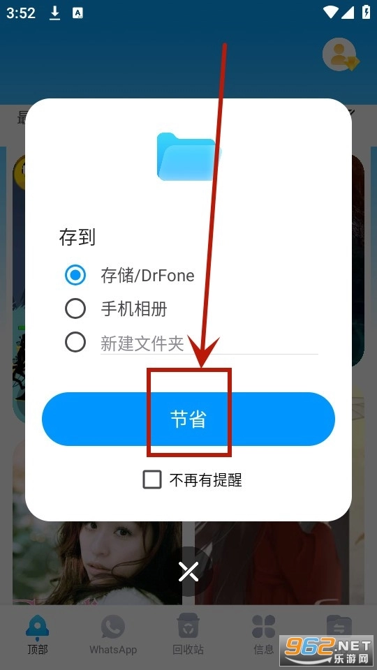 选定你想要保存的地方,点击【节省】